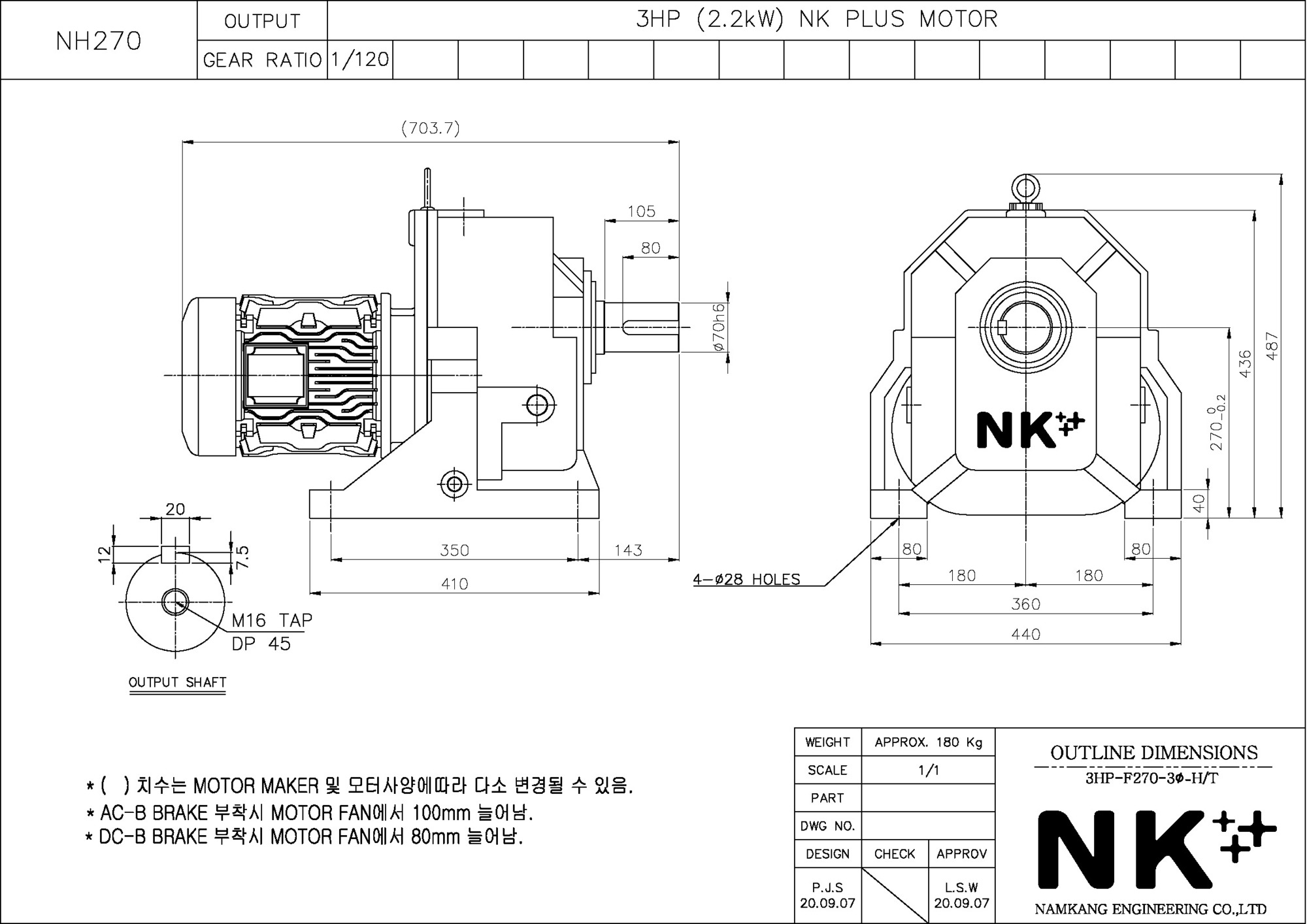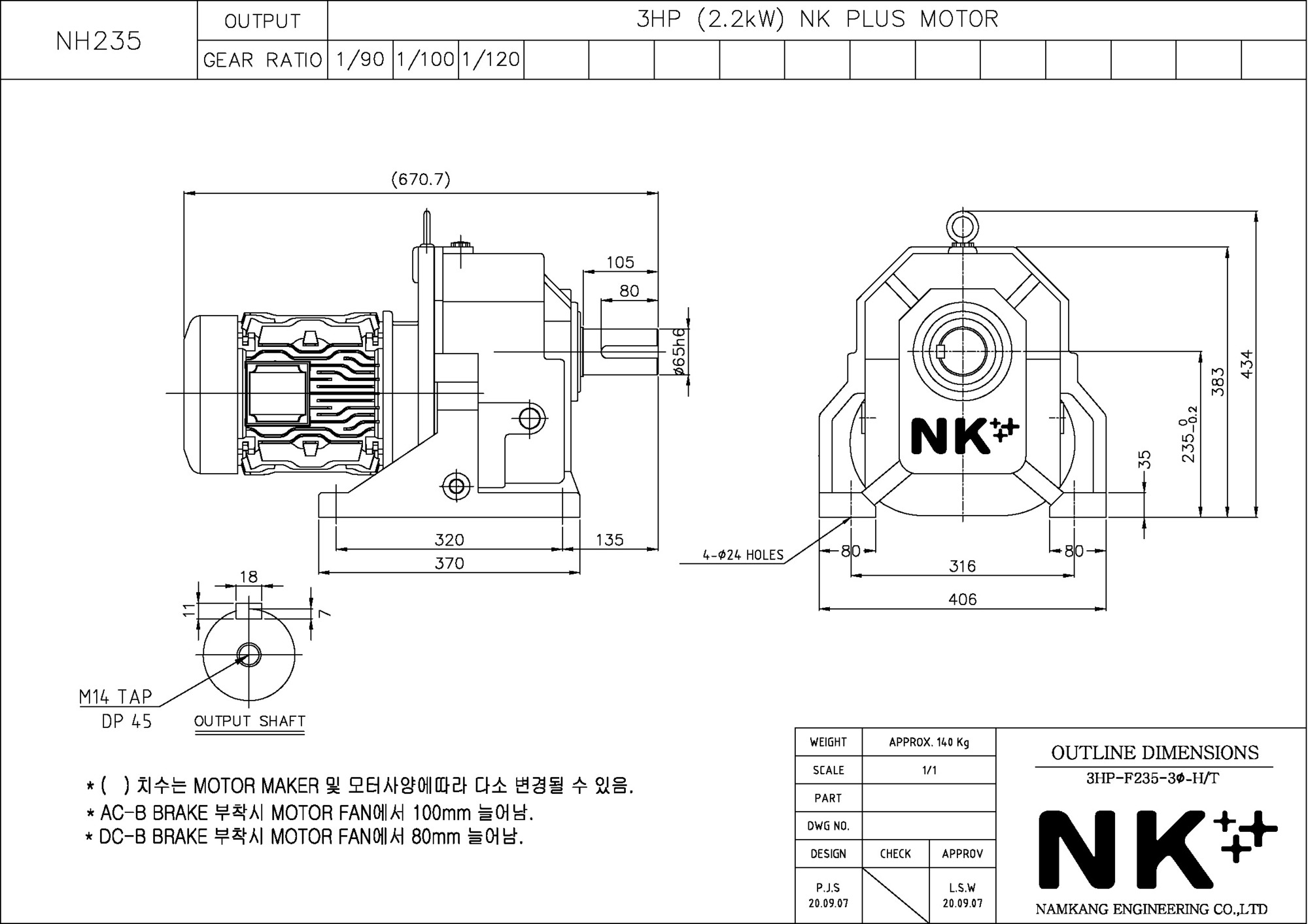 - NK PLUS MOTOR (남강 자사모터), 효성모터, 하이젠모터 적용